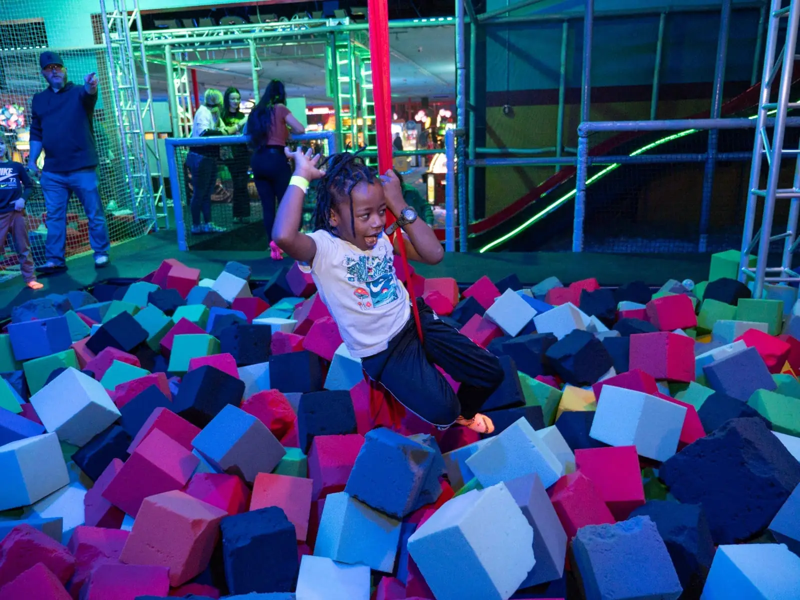 Glide, spin, and swing like a pro on Zap Zone’s Silk Swings! Whether you’re twirling through the air or just enjoying the gentle sway, this attraction combines fun and fitness in one unforgettable experience. It’s the perfect spot to test your balance, strength, and creativity—all while having an absolute blast!